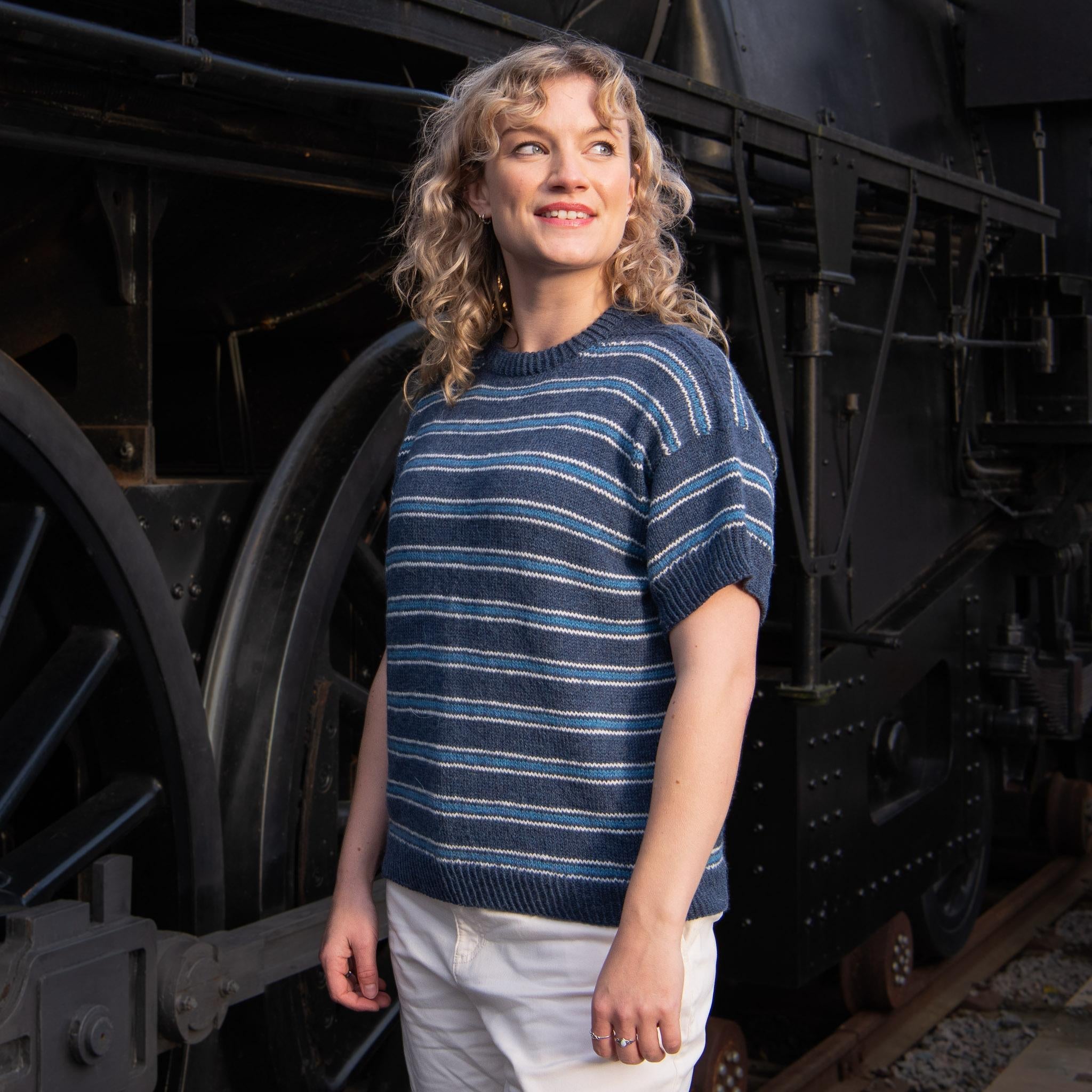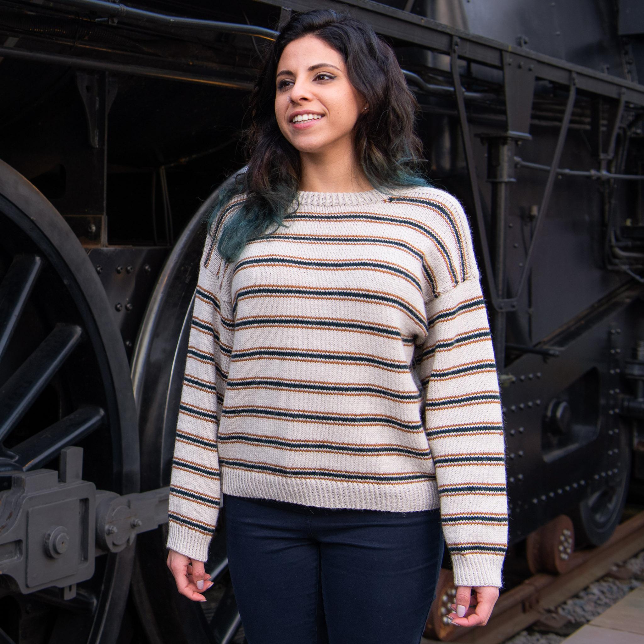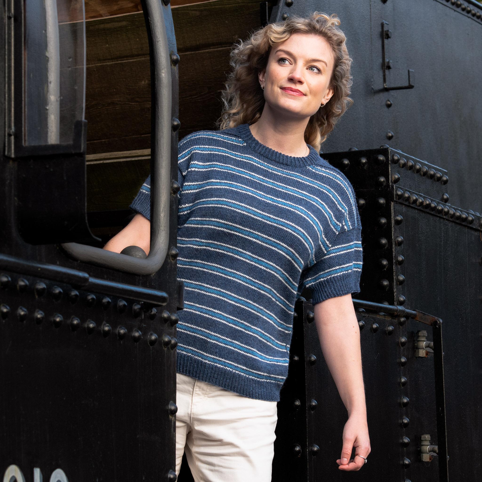 Chamomile by Vanessa Pellisa is a top-down stripy drop-shoulder pullover with neck gussets and a folded neckband. The pattern is written for both a long and short sleeve versions making it both the perfect summer tee and a sweater for cool evenings. It is inspired by classic French Breton Marinière tops, Provence markets, and lazy evenings at the beach.