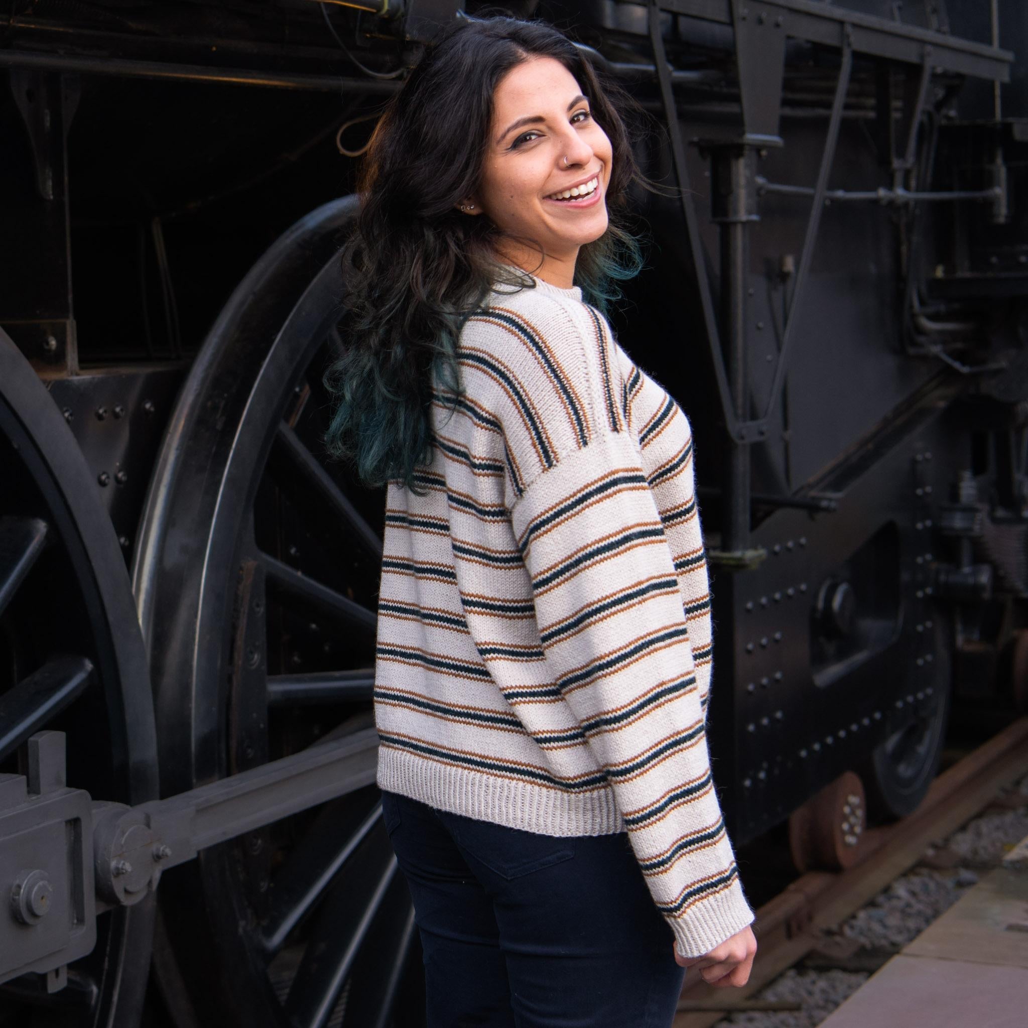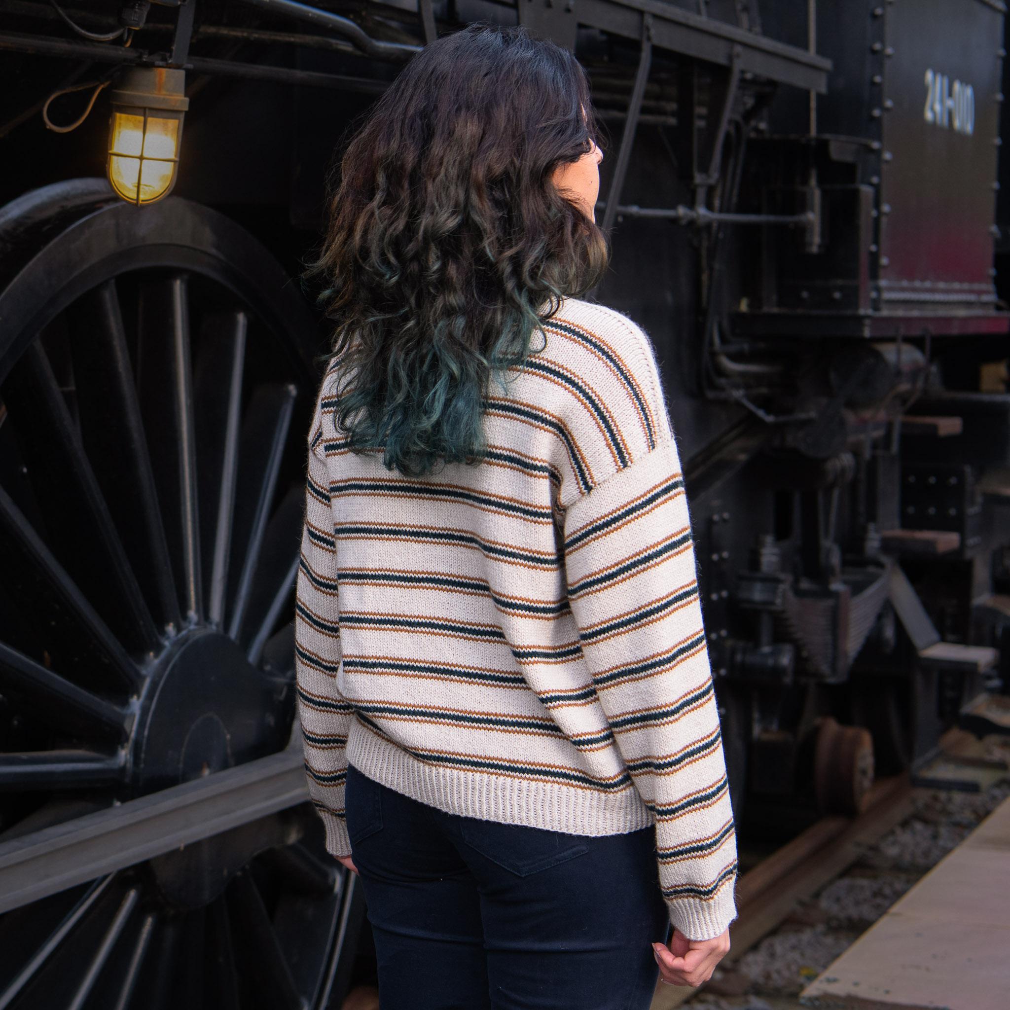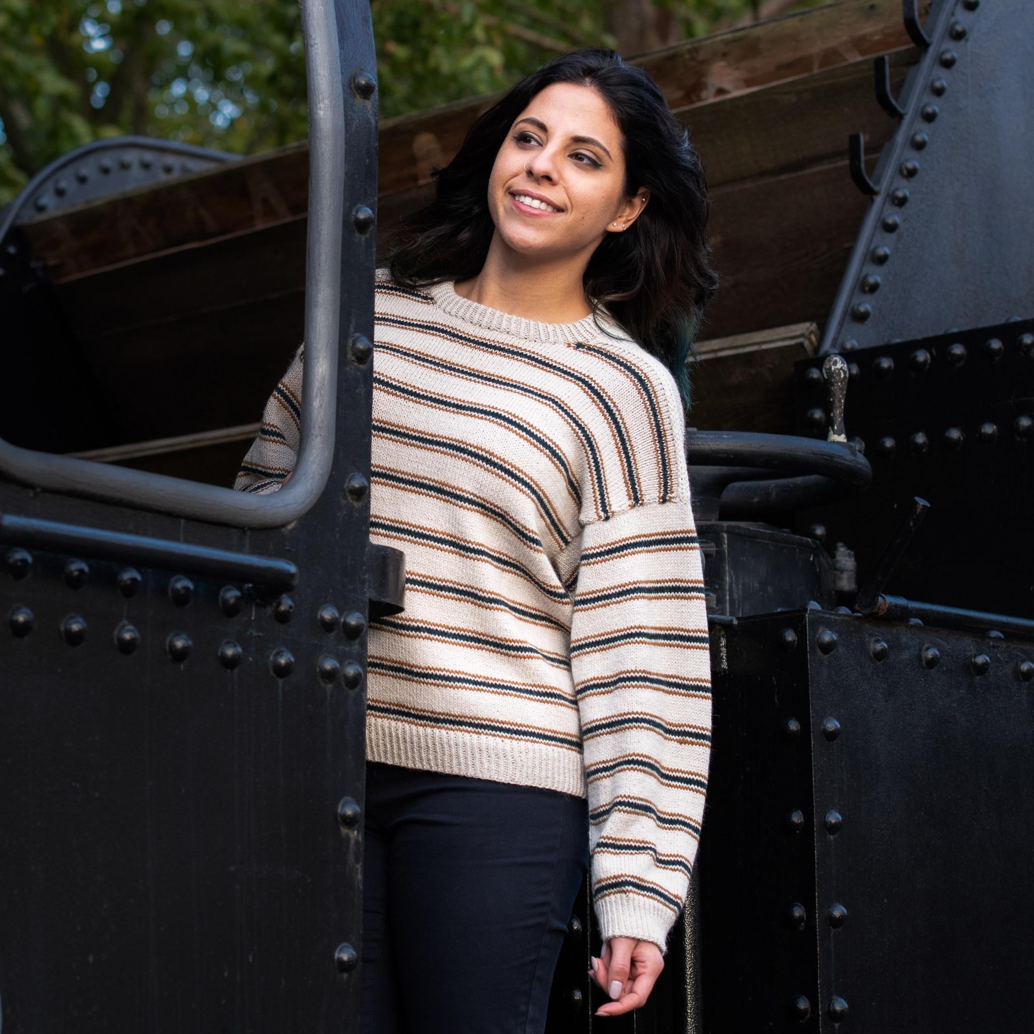Chamomile by Vanessa Pellisa is a top-down stripy drop-shoulder pullover with neck gussets and a folded neckband. The pattern is written for both a long and short sleeve versions making it both the perfect summer tee and a sweater for cool evenings. It is inspired by classic French Breton Marinière tops, Provence markets, and lazy evenings at the beach.