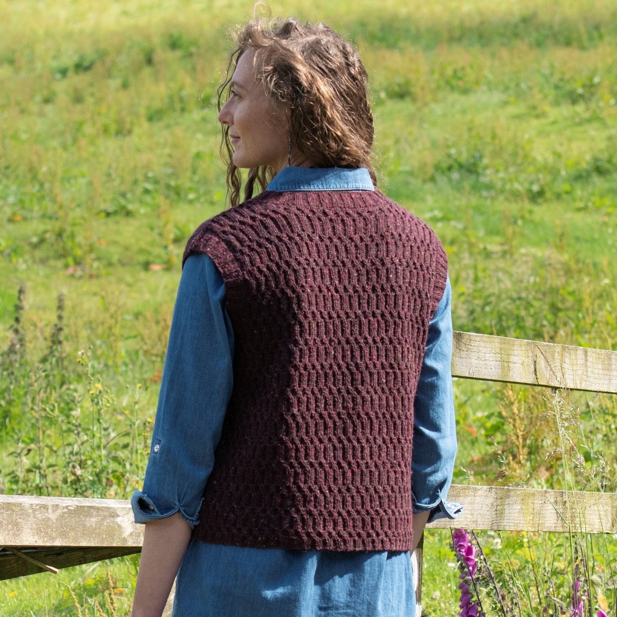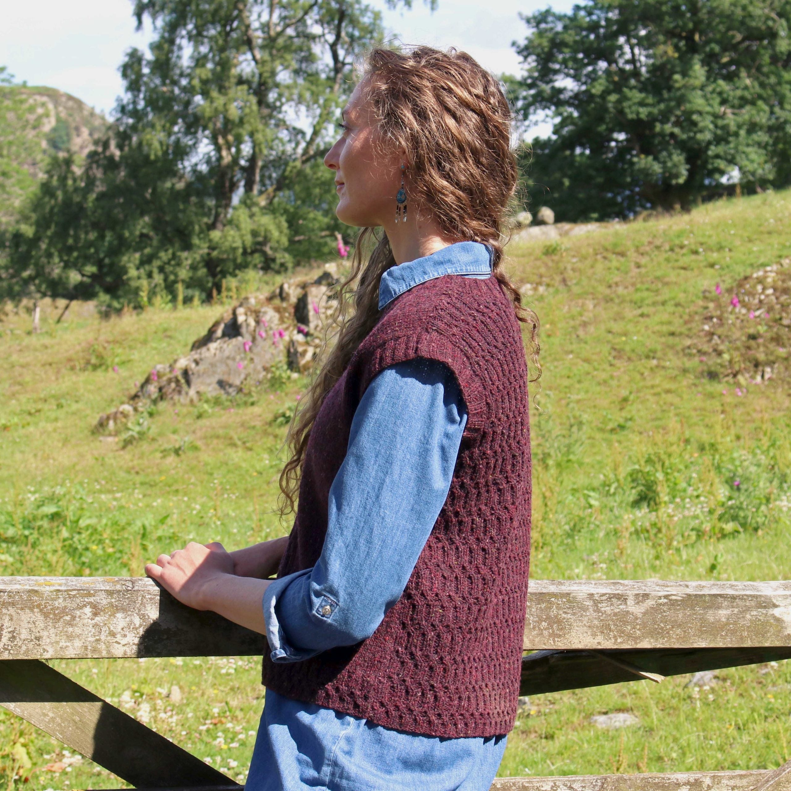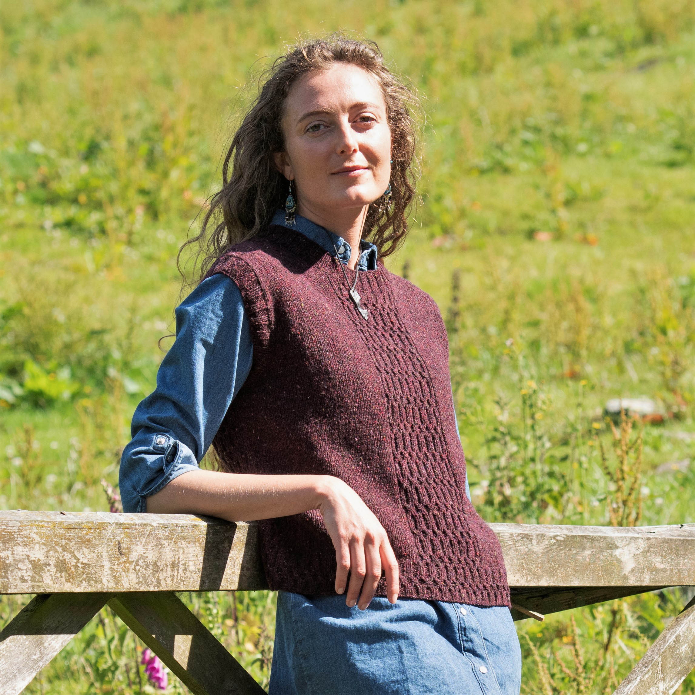 Cherry Bark is a classic slipover knit in our wonderfully full yarn Arranmore Light. The design features a textured stitch pattern across the back and comes with two neck options. The first option is a roll neck with a plain stocking stitch front, shown in this pattern in shade St. Claire and the second option is a wide crew neck with a front texture panel shown in shade Brannagh.
