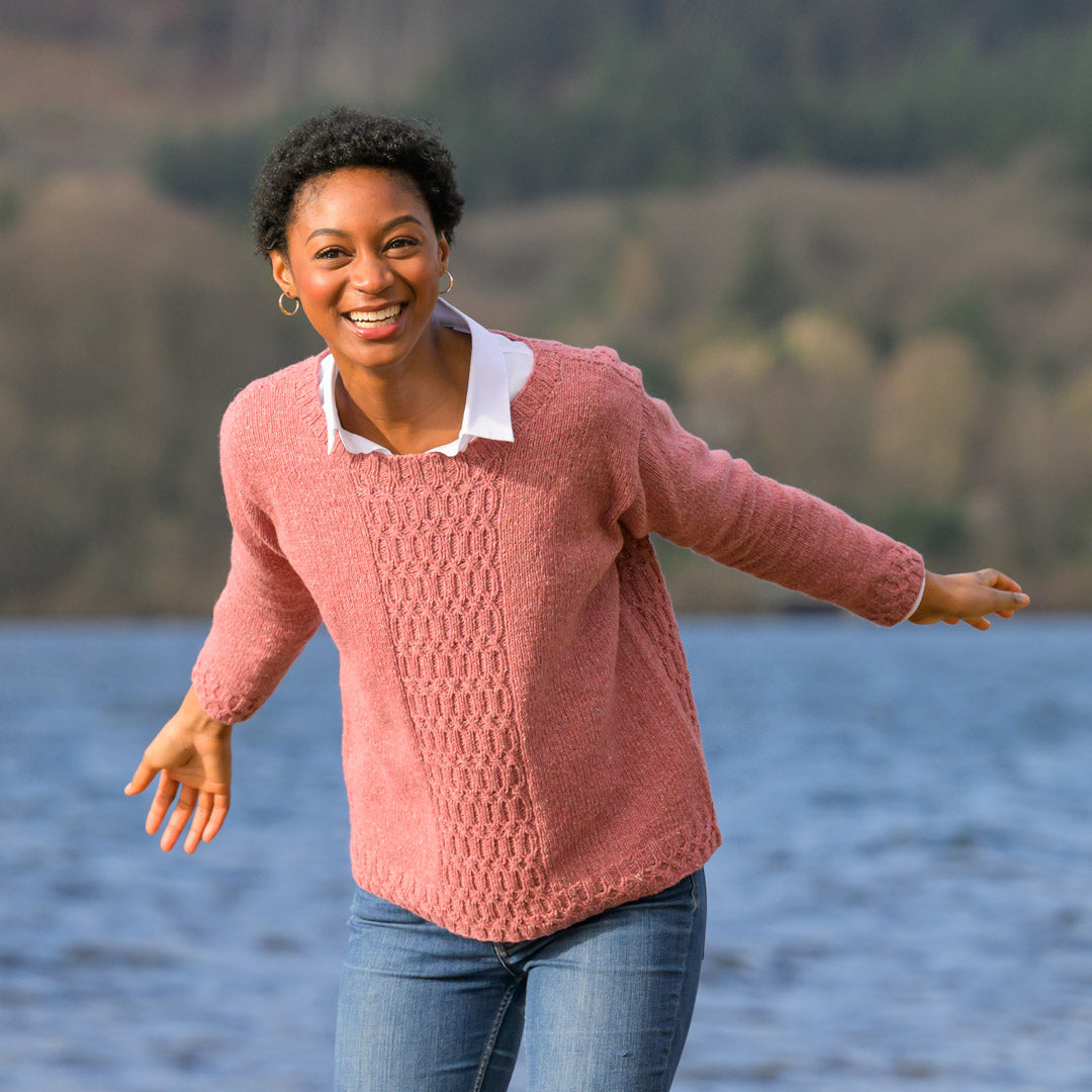Arranmore Light brings a luxurious feel to this pullover, with a tweedy blend of cashmere, silk, and Merino that offers beautiful drape and softness.