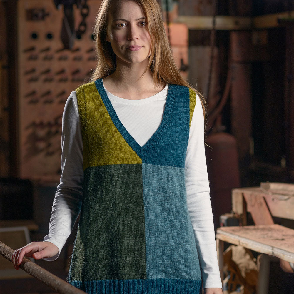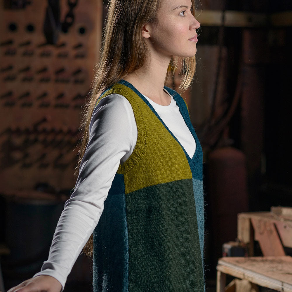 You can make your own version by purchasing the Colour Block Tunic Pattern and Cumbria Fingering.