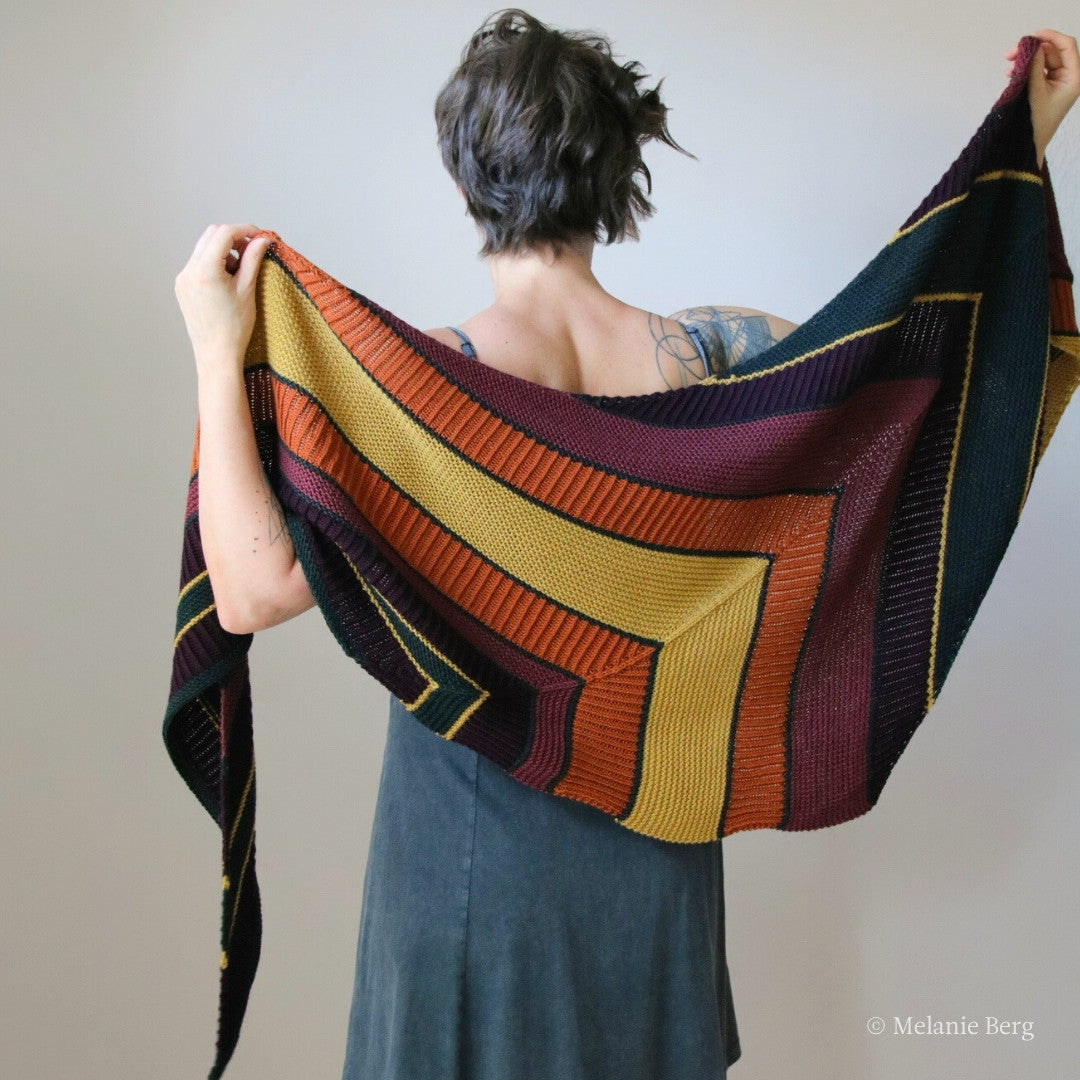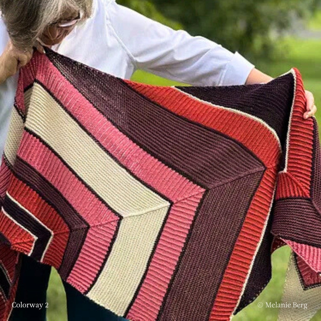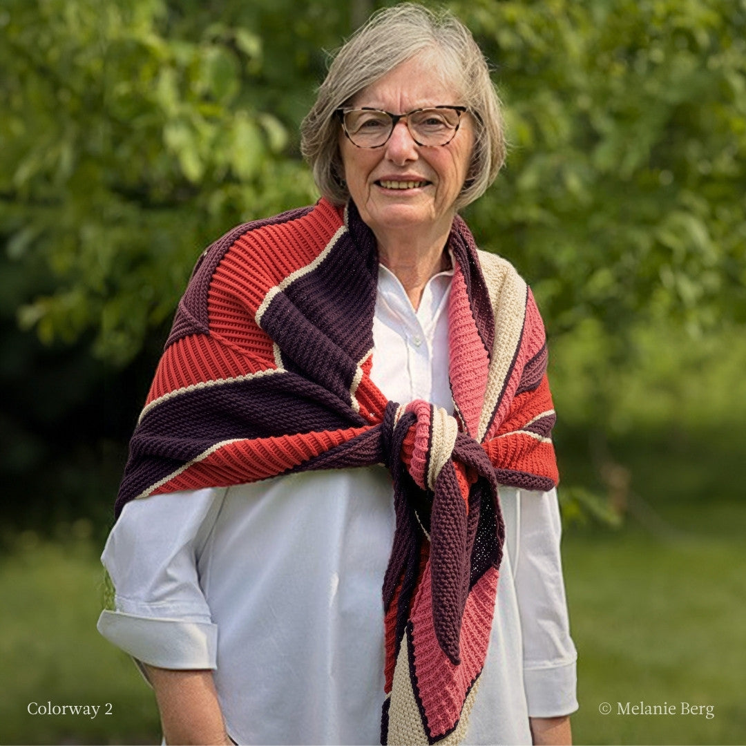 Fall in love with color, texture, and the joy of making with Crush Season, a stunning five-color shawl designed by renowned designer Melanie Berg and brought to life in Herb & Hue. Crush Season celebrates the magic that happens when five stunning shades come together on your needles, when the colors dance, shift, and surprise you with every row. The shawl’s playful, engaging construction transforms simple stitches into something truly special. Generous in size and endlessly wearable, it wraps beautifully around your shoulders or drapes effortlessly as a statement piece, perfect for cozy afternoons or long, dreamy evenings of knitting pleasure.