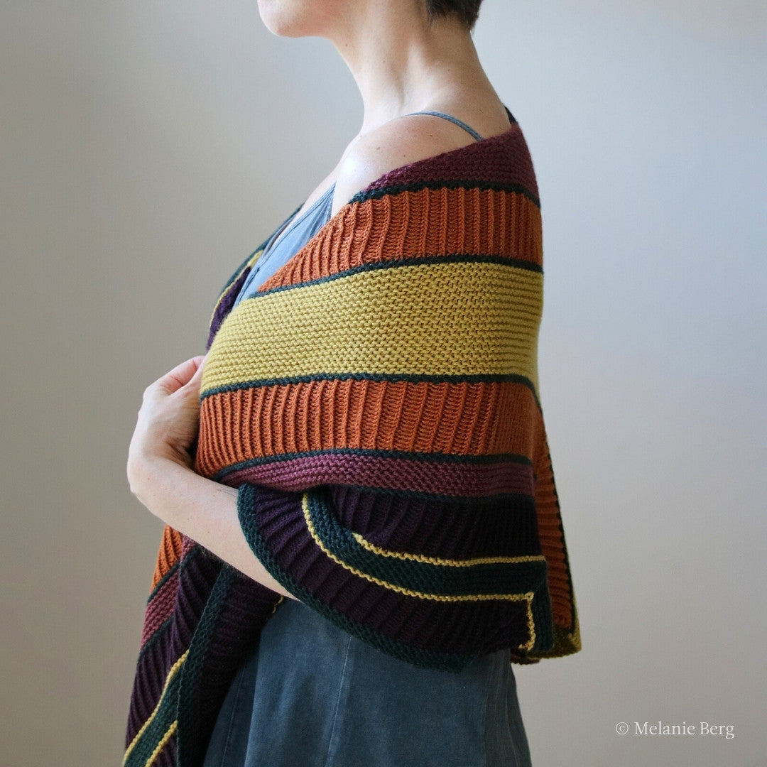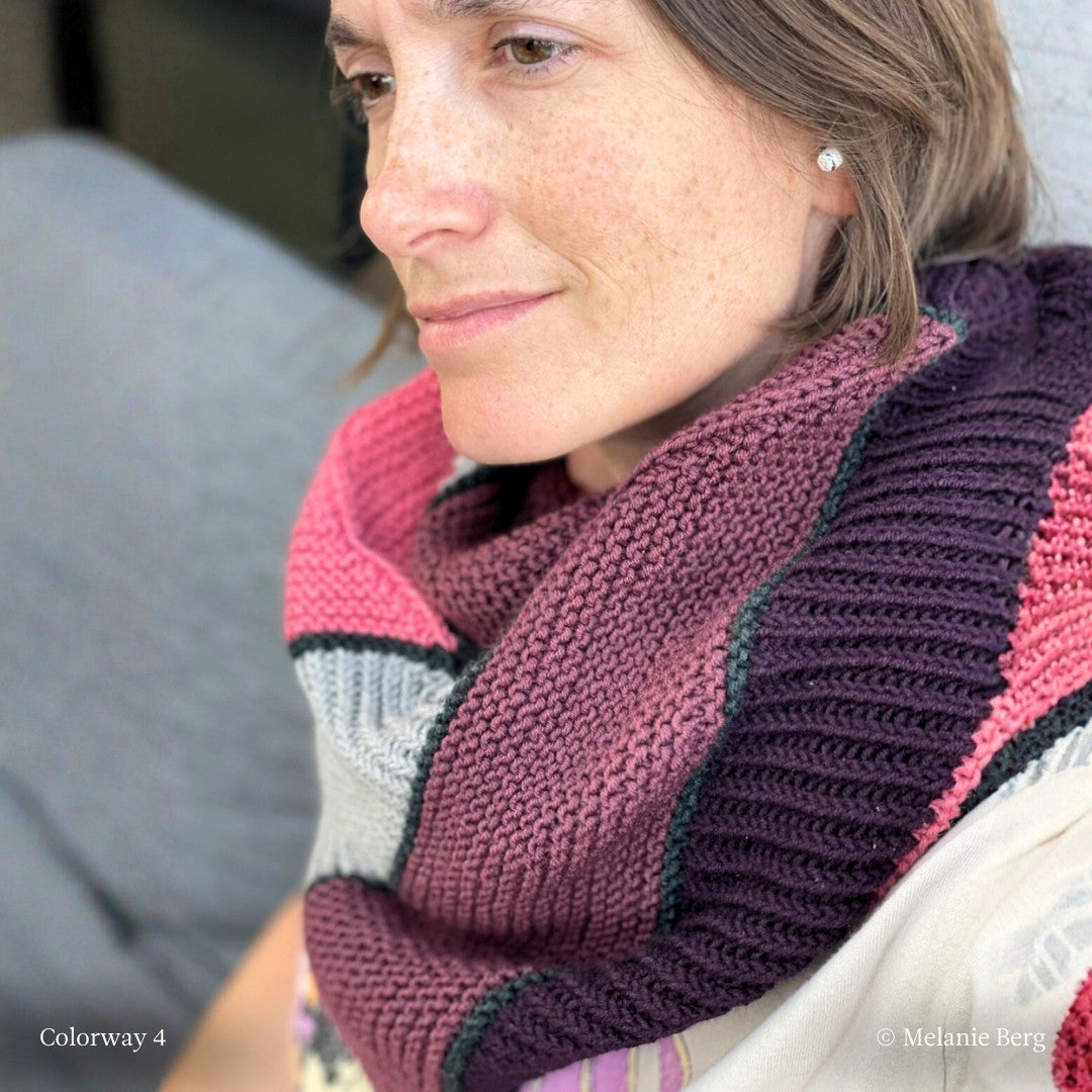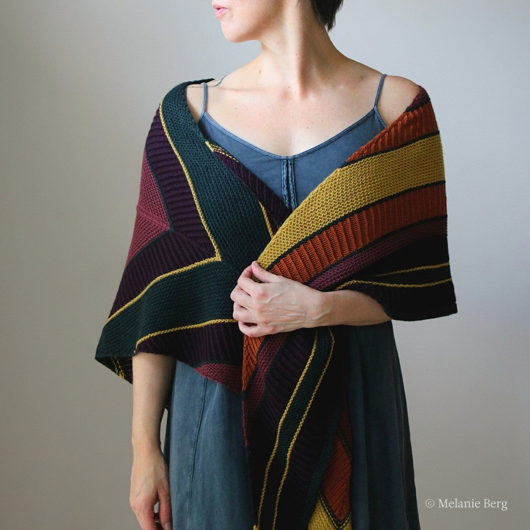 Fall in love with color, texture, and the joy of making with Crush Season, a stunning five-color shawl designed by renowned designer Melanie Berg and brought to life in Herb & Hue. Crush Season celebrates the magic that happens when five stunning shades come together on your needles, when the colors dance, shift, and surprise you with every row. The shawl’s playful, engaging construction transforms simple stitches into something truly special. Generous in size and endlessly wearable, it wraps beautifully around your shoulders or drapes effortlessly as a statement piece, perfect for cozy afternoons or long, dreamy evenings of knitting pleasure.