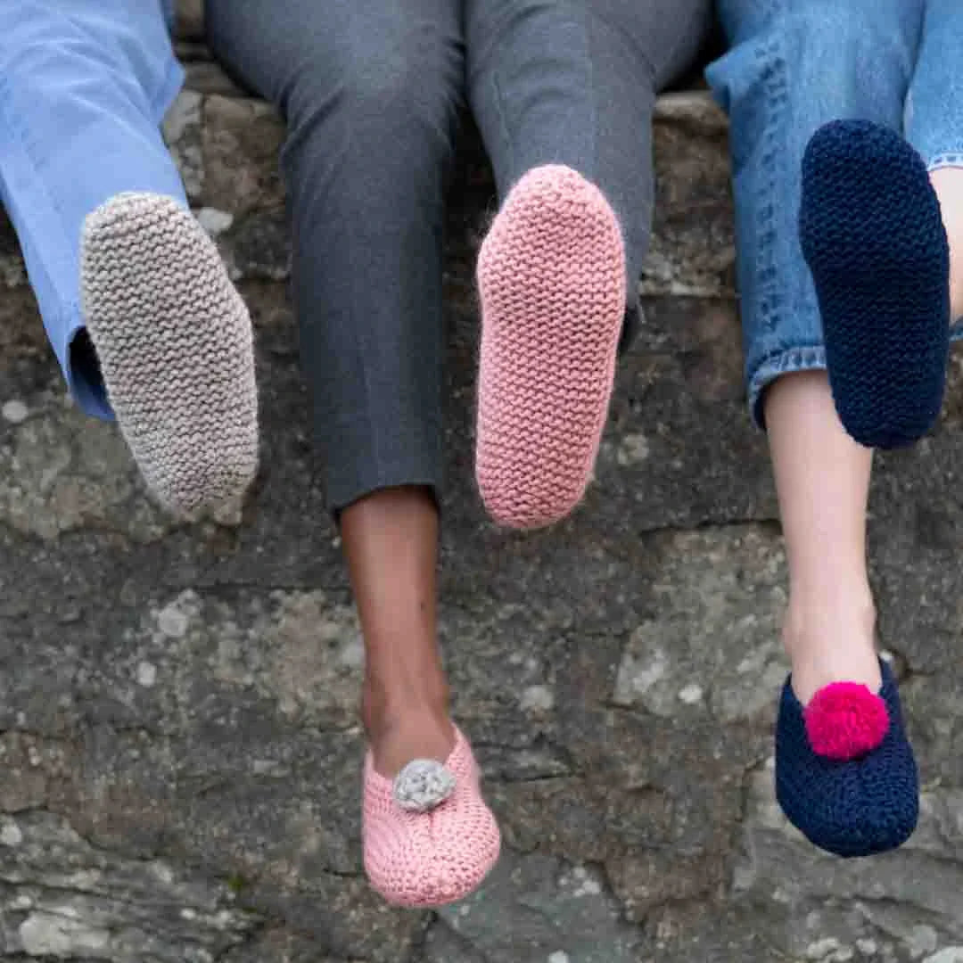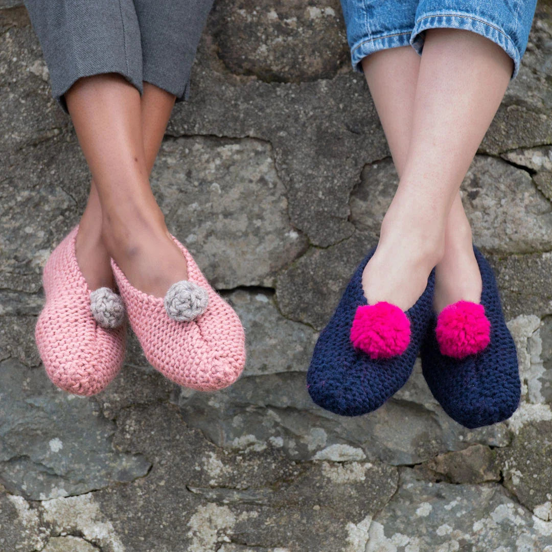 The soft enveloping warmth of &Make Super Bulky, made from 100% Peruvian Highland wool, makes these slippers a truly luxurious and serene foot experience.