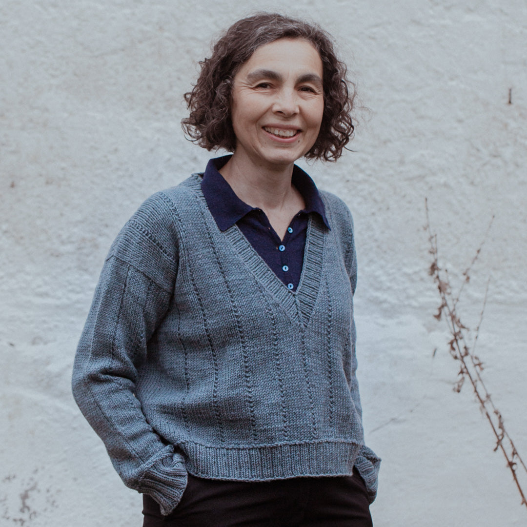 The Global Shift Sweater brings contemporary construction to timeless design, featuring offset globe cables from a vintage Swedish cable pattern running down the center back. Part of the Global Shift Collection, this sweater showcases the signature cable work that defines the series. This comfortable pullover is worked from the top down with picked-up sleeves, making it easy to try on and adjust as you knit. The remaining fabric showcases a subtly striped pattern with wide textured stockinette sections, creating stockinette-like drape with added textural detail, while the deeper V-neck and relaxed fit ensure effortless wearability.