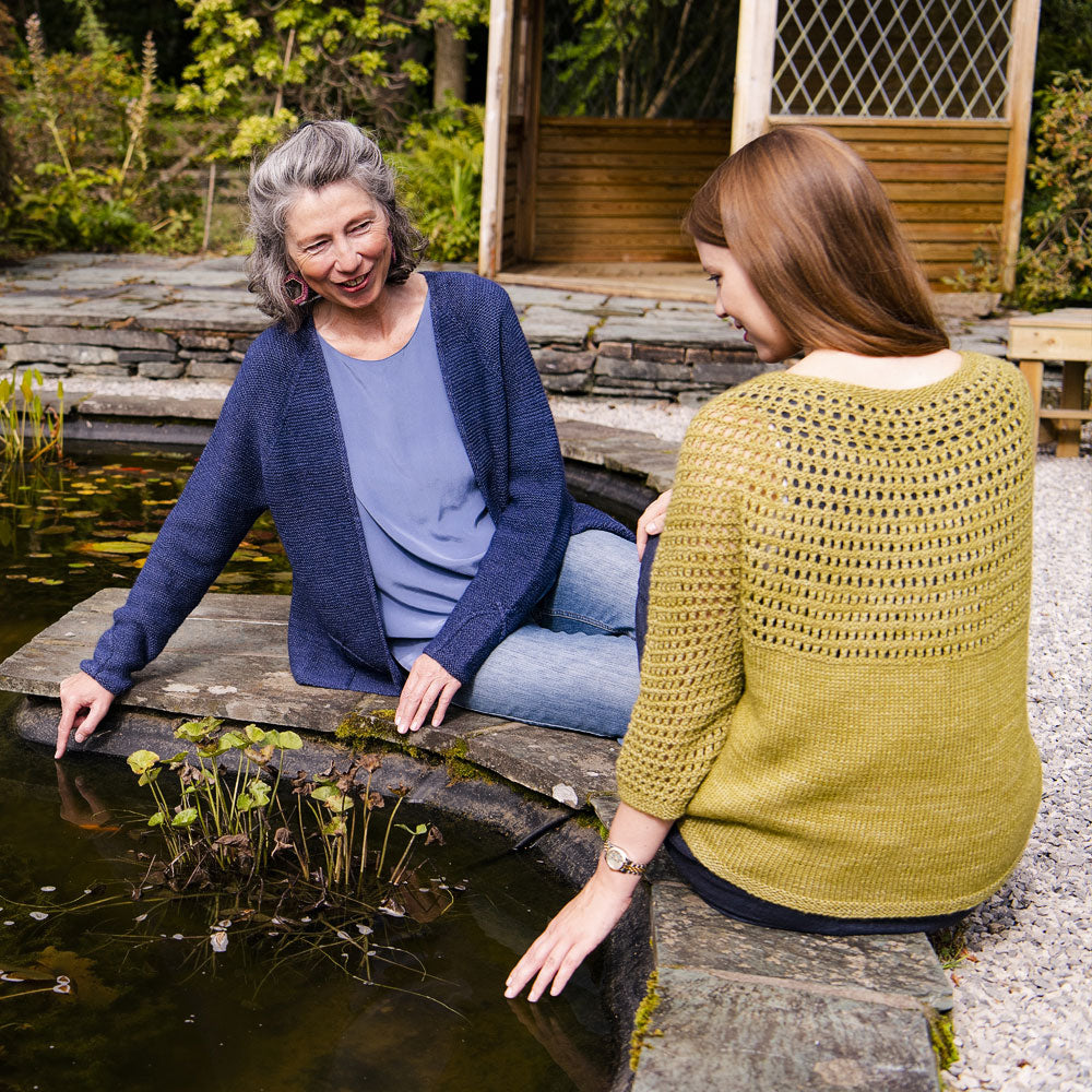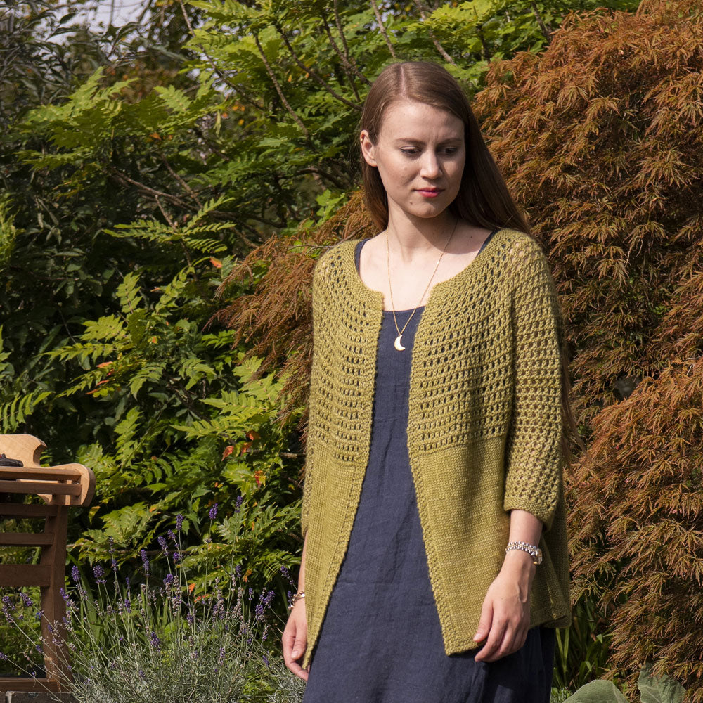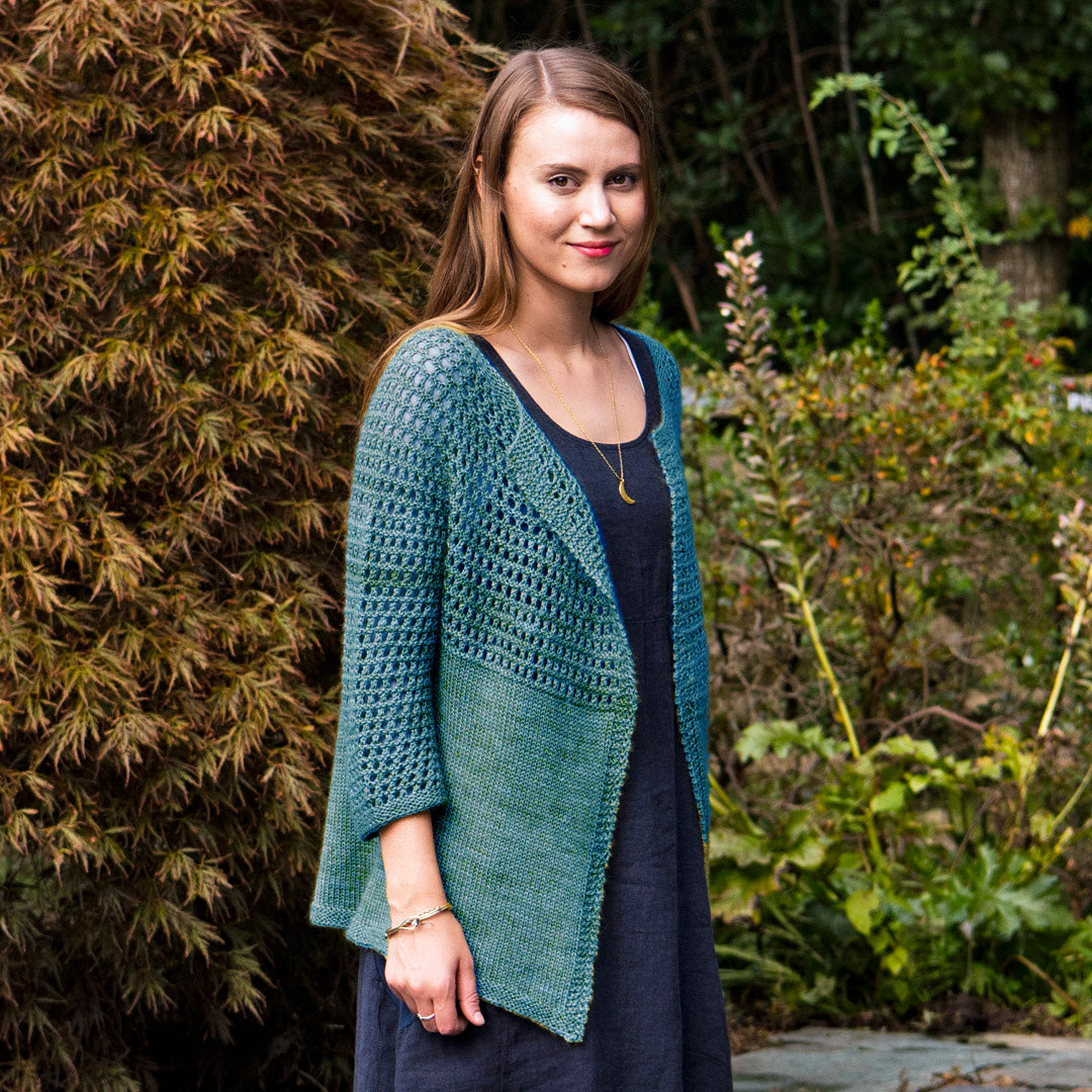 Greenall is a yoke cardigan with a striking eyelet stitch across the upper body and sleeves. It was knit seamlessly in one piece in the luxurious Road to China Light making this cardigan a pleasure to wear.
