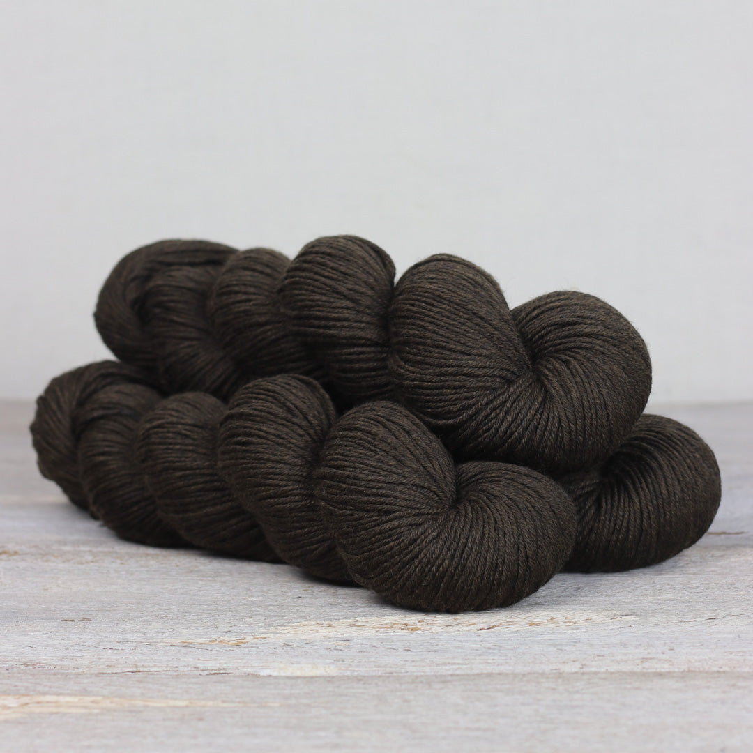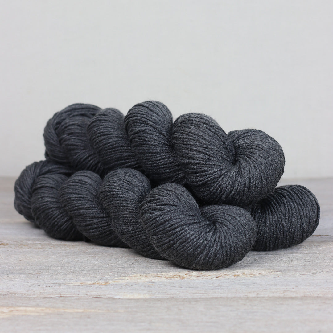 Once dyed, the fibre is worsted spun to create a fine two-ply yarn, which is then twisted together seven times to create a balanced, rounded yarn. Worsted spinning aligns the fibres and removes shorter strands, producing a yarn that is exceptionally smooth and durable. Finally, the yarn is steamed and finished into hanks.