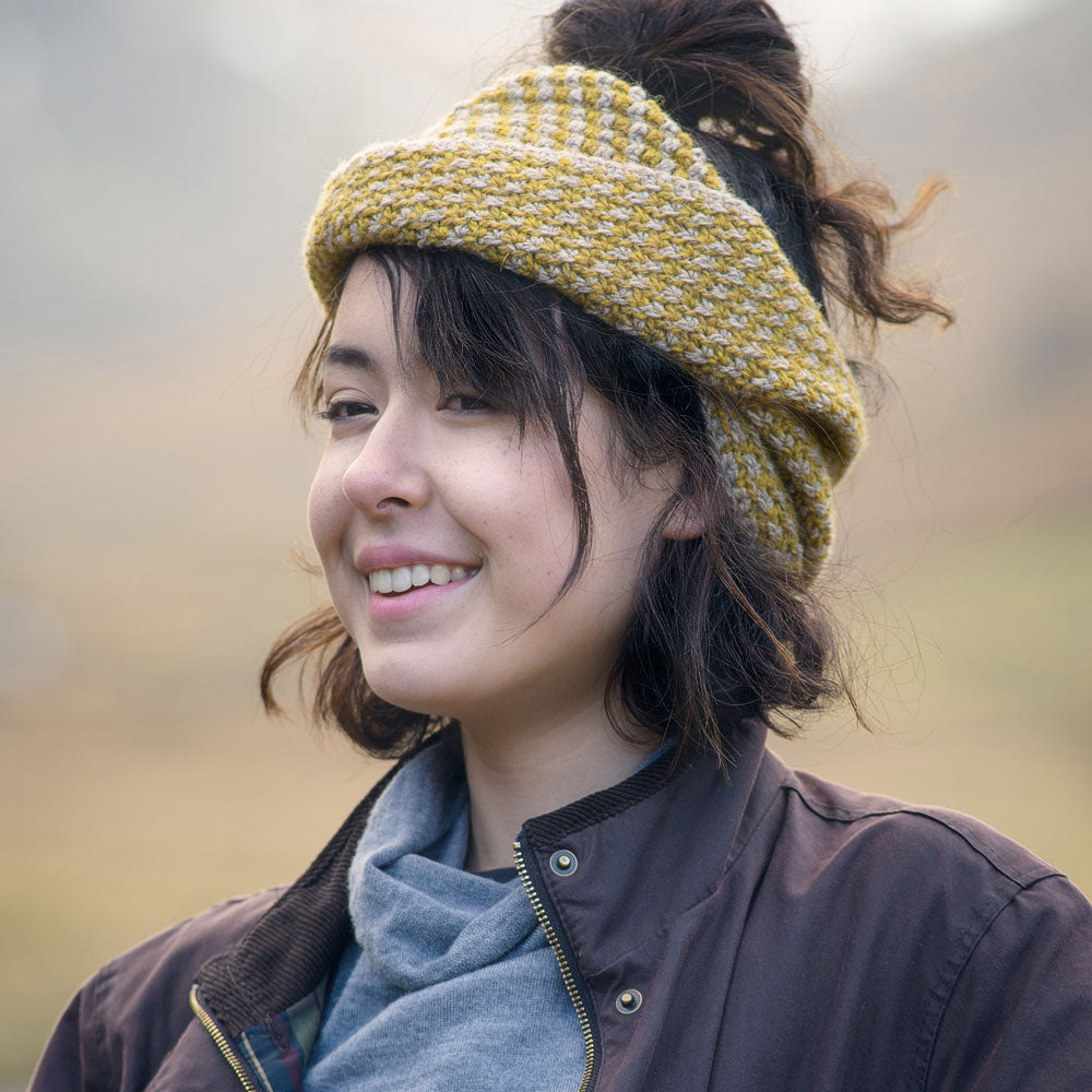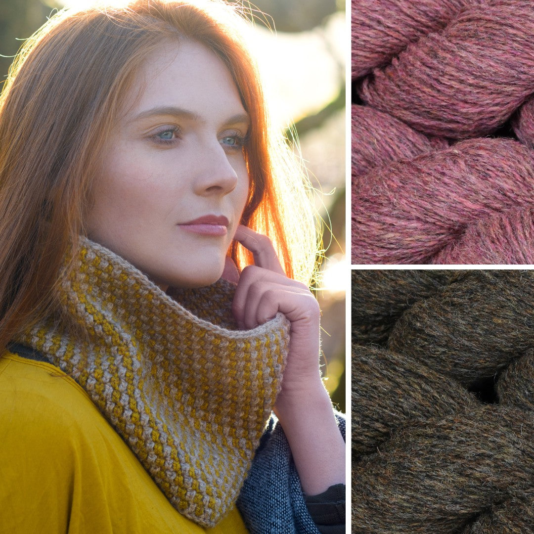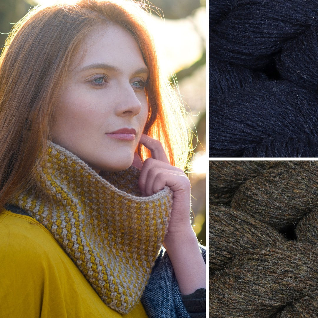 Knotts View is a stylish crochet cowl worked in two colours and a textured geometric stitch. It uses Lore to create a playful fabric that is as fun to crochet as it is to wear. Wear it around the house to keep your neck snuggly and warm or under your coat as a protective layer from the elements.