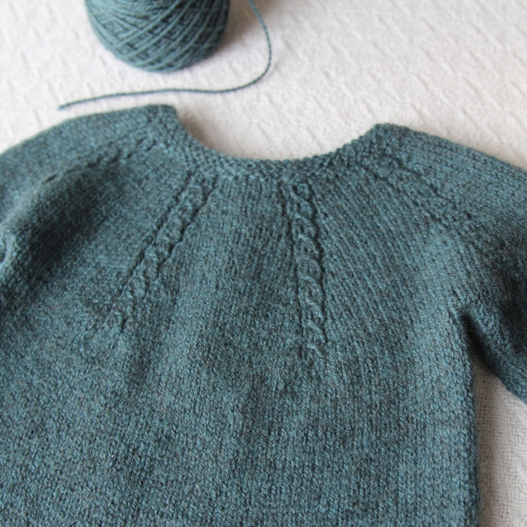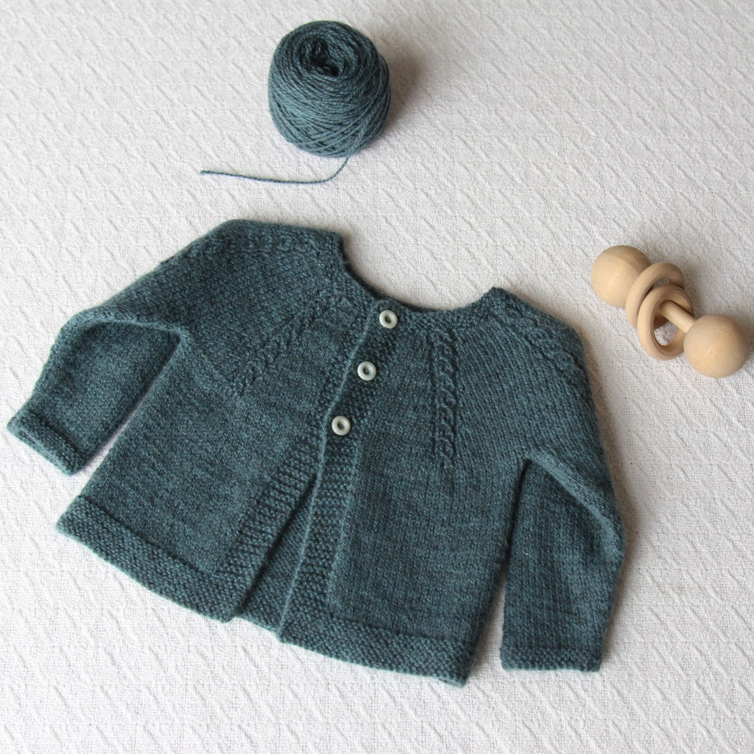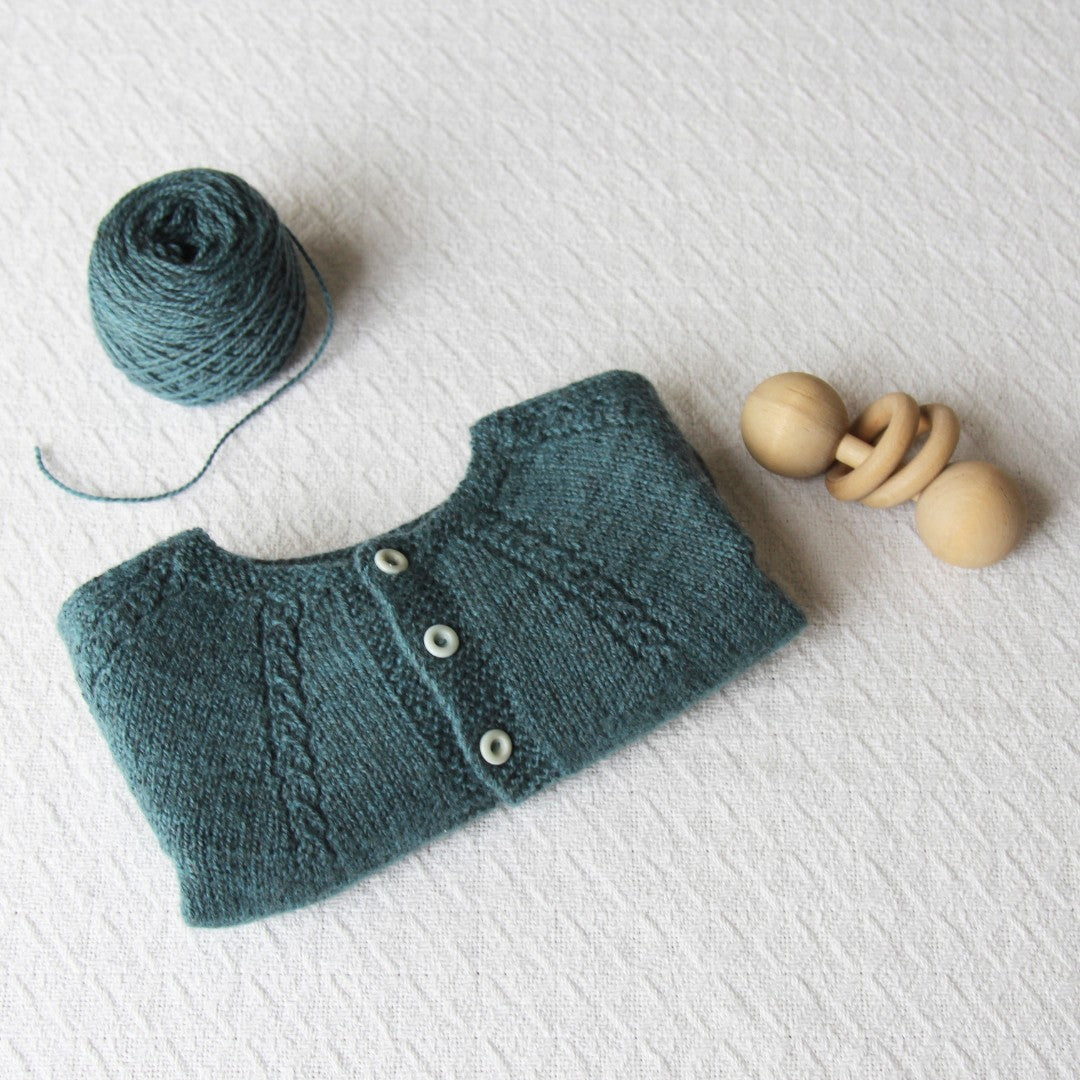 The Little Cables cardigan by Florence Merlin is a charming, versatile baby sweater designed for everyday comfort. It can be worn as a traditional cardigan with buttons in front or as a sweet pullover with the fastening at the back—perfect for easy dressing. Worked top-down on straight needles, the pattern begins with a tidy neck and yoke worked back and forth before dividing for body and sleeves. The body continues flat, and the sleeves are also worked flat from the top down, with simple undersleeve seams for a clean finish. The result is a timeless, gentle layer with subtle texture and thoughtful details, ideal for little ones.