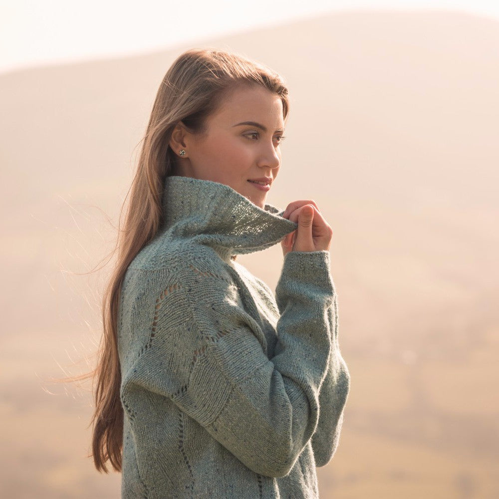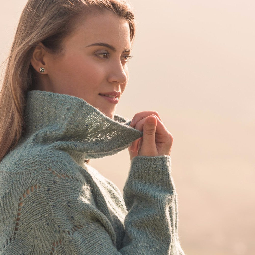 The Fibre Co. Arranmore Light (80% merino wool, 10% cashmere, 10% silk, 300 m (328 yd) per 100g hank) in shades River Esque, Malin Head, and St. Claire – 4 hanks.