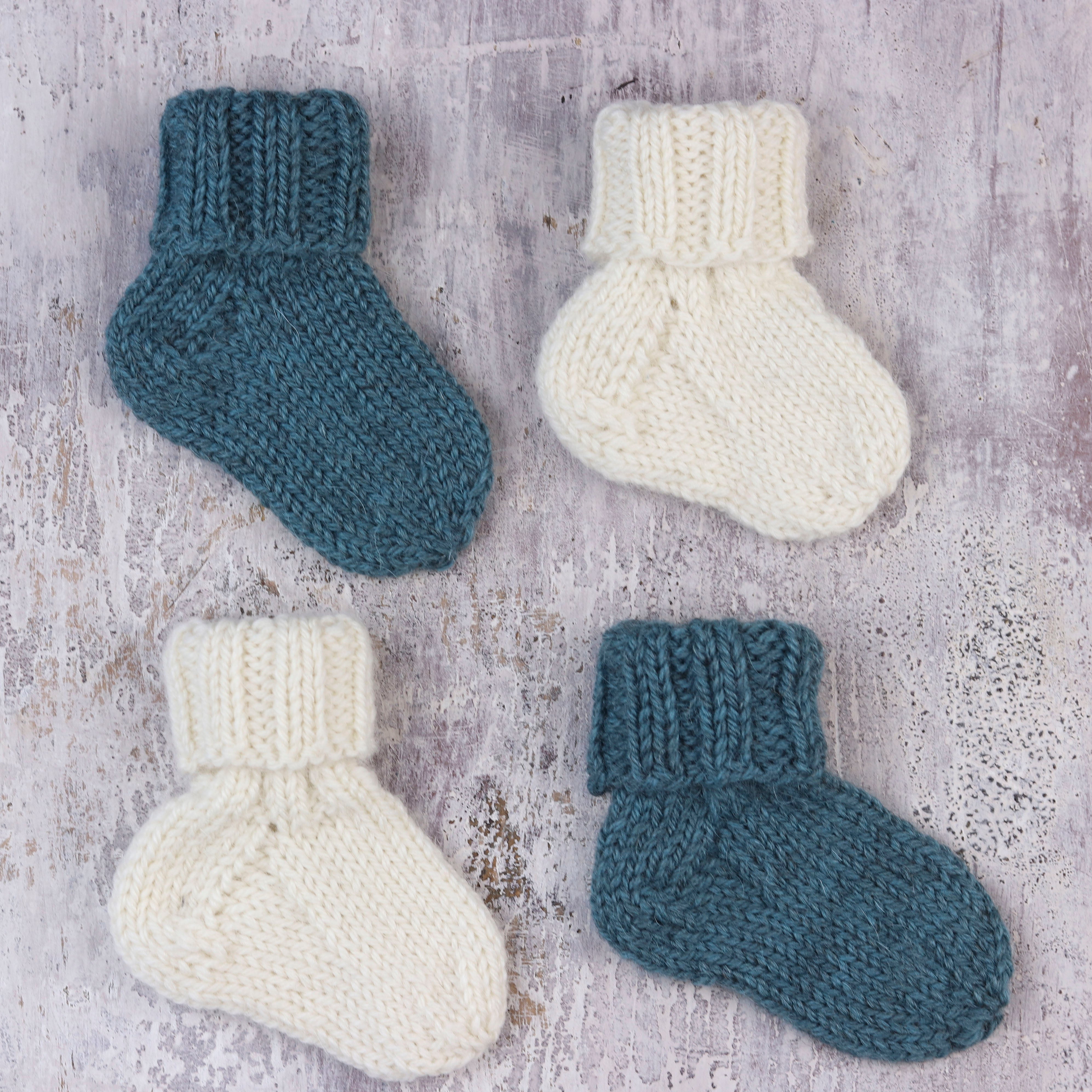 Note: This kit includes enough yarn to make two pairs of baby socks.