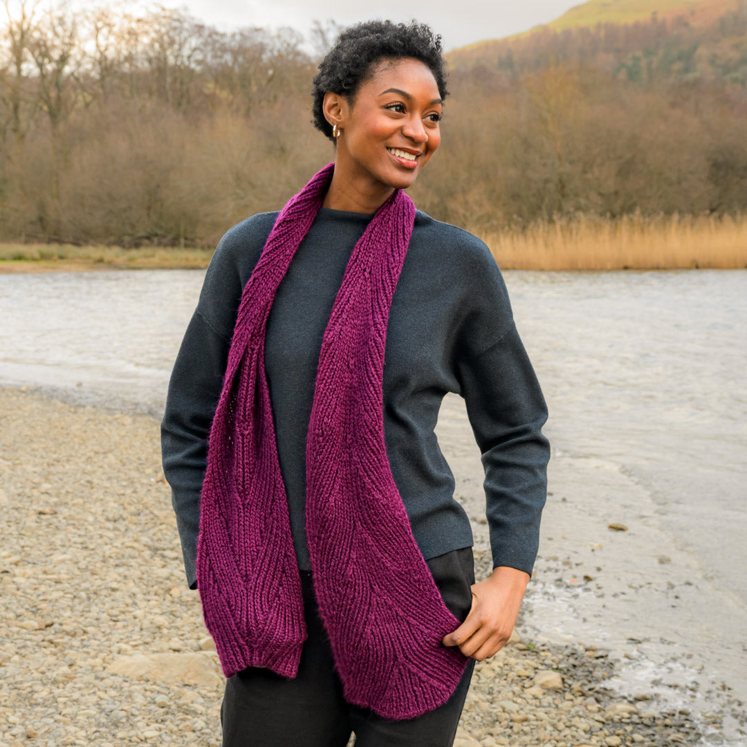 Wrap up in style, warmth, and a touch of oceanic beauty in the Pelagic Scarf. The travelling rib stitch pattern brings to mind the infinitely rolling waves of the sea.