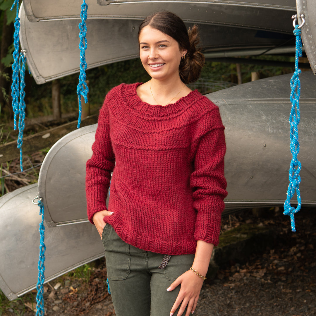 With a sweater this versatile, there are an infinite number of styling options! Our new Purls of Wisdom sweater is designed for not one but three weights of yarn making it as versatile to knit as it is...