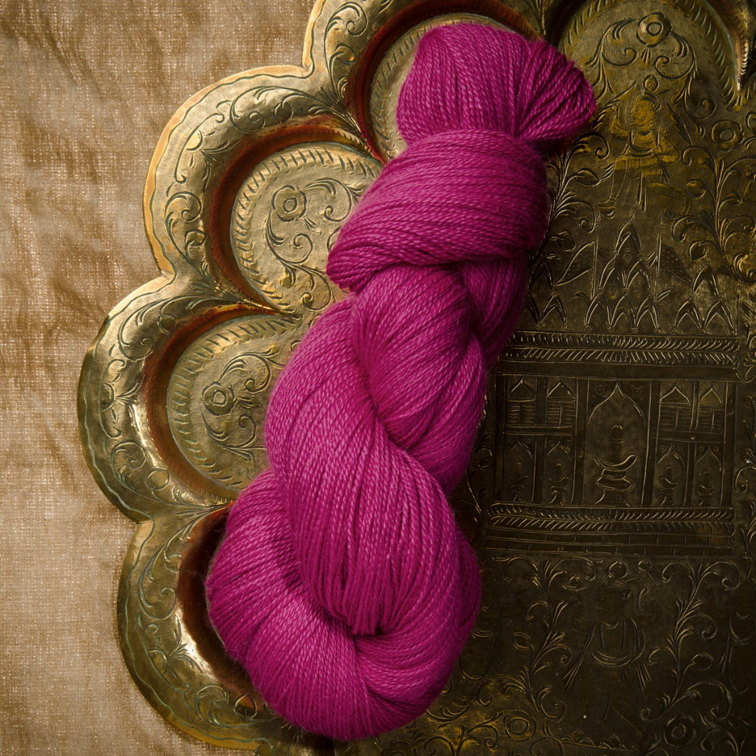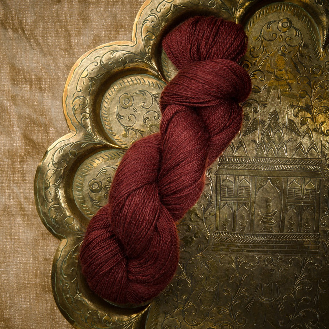 The laceweight version of Road to China felt like a natural progression and harnesses all the softness, drape of the sportweight version along with the hidden strength of silk. This is a lace skein that really indulges the maker. The additional yardage this skein provides means the indulgent hours making treasured handmades can extend just that little further and one skein is all that is necessary for special accessories.