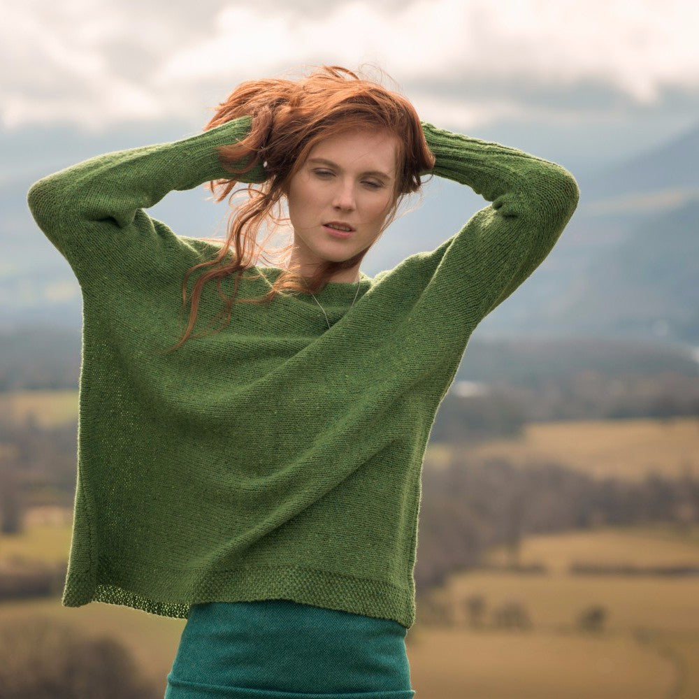 The Fibre Co. Arranmore Light (80% Merino wool, 10% cashmere, 10% silk, 300 m (328 yd) per 100g hank) in shades Corcoran, Kinnego Bay, or Shamrock – 4 hanks.
