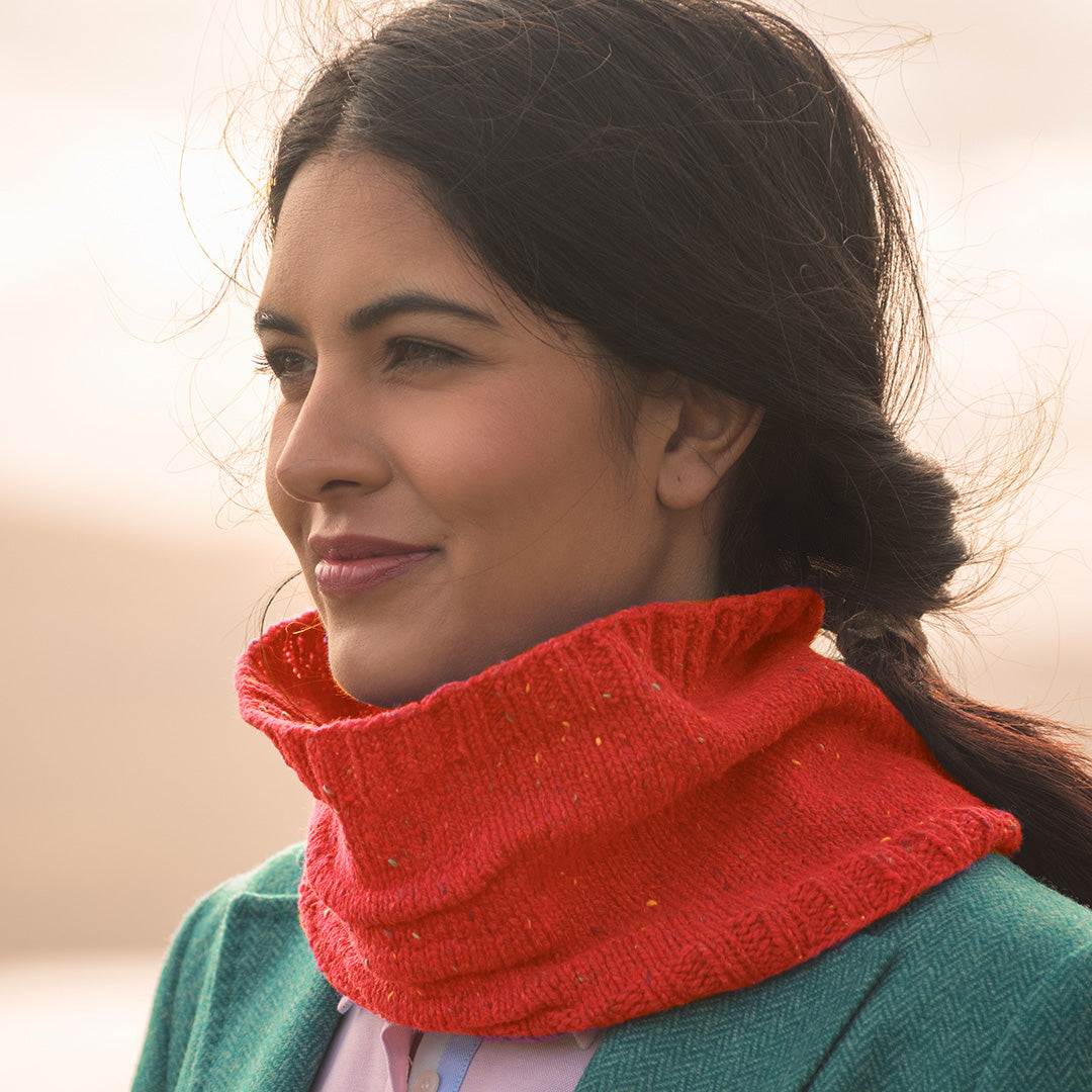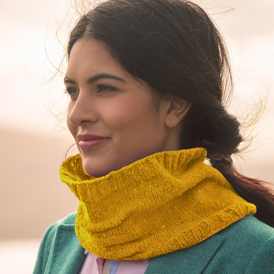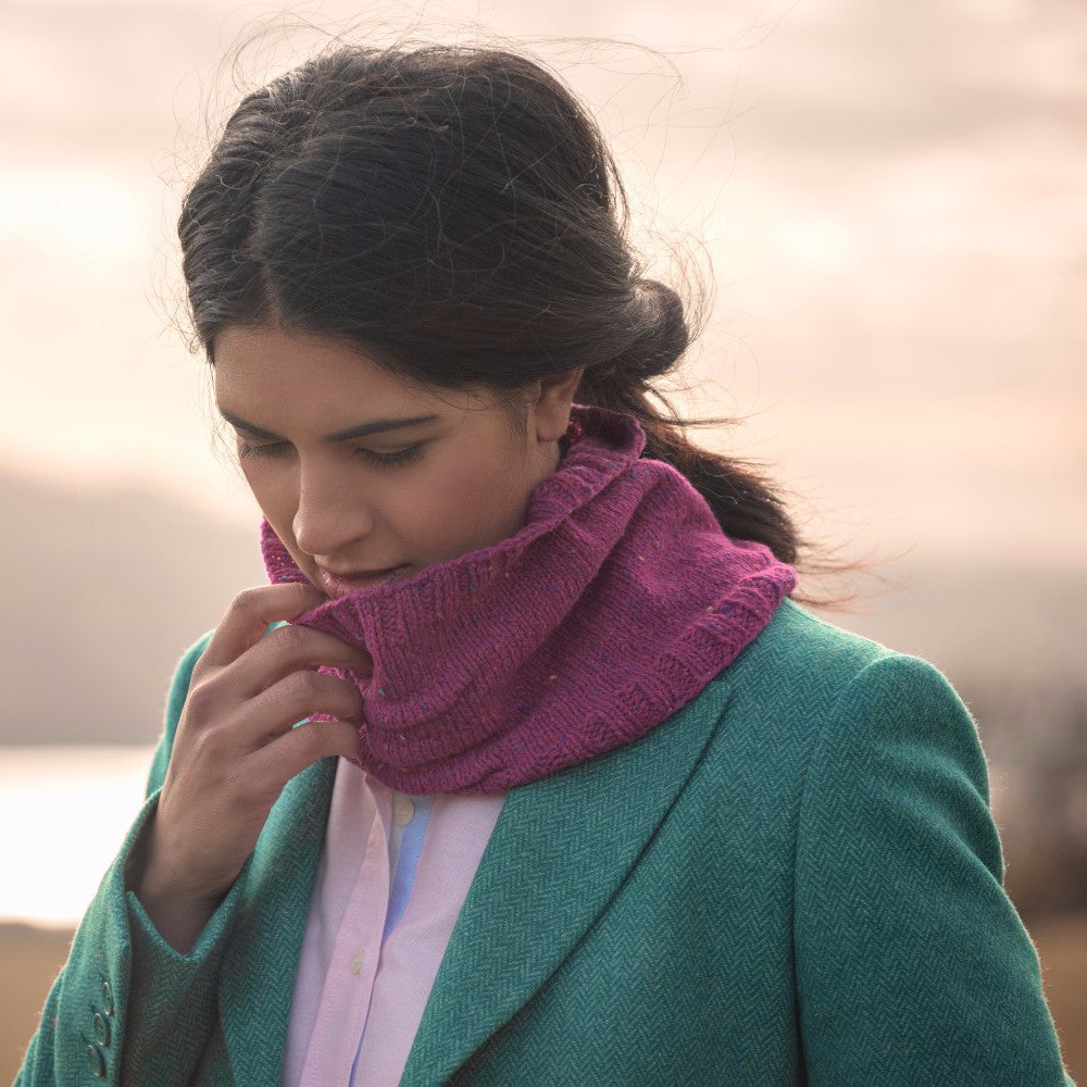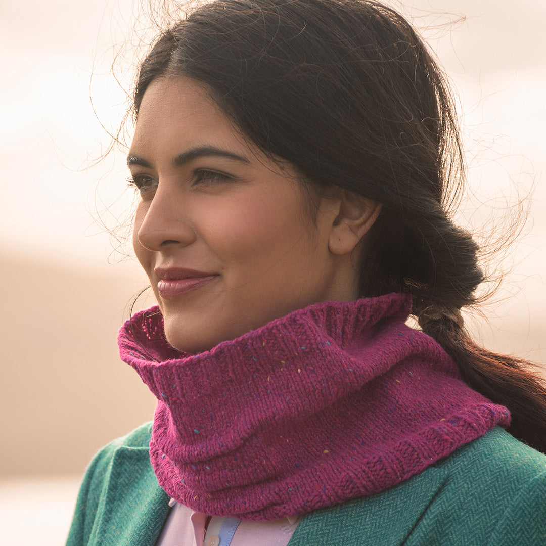 This simple cowl, designed by Emma Welford, features beautiful knitted tucks so it sits just right when worn.