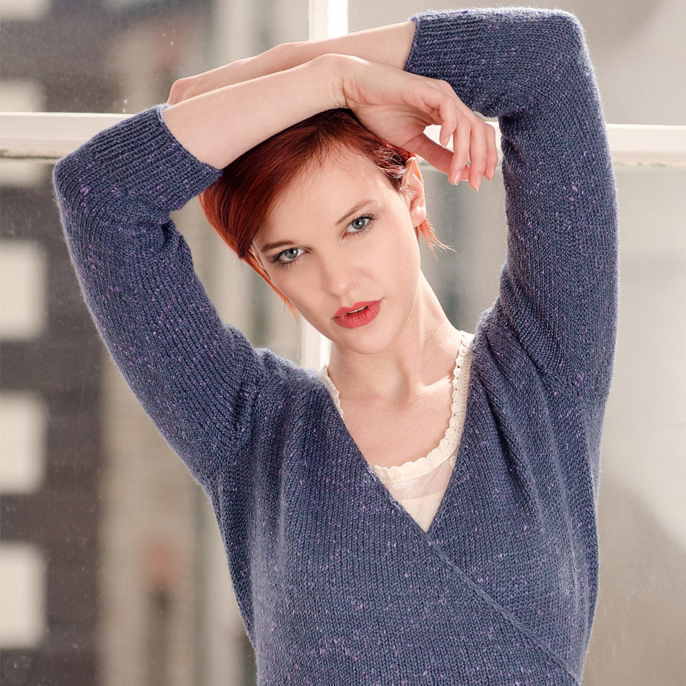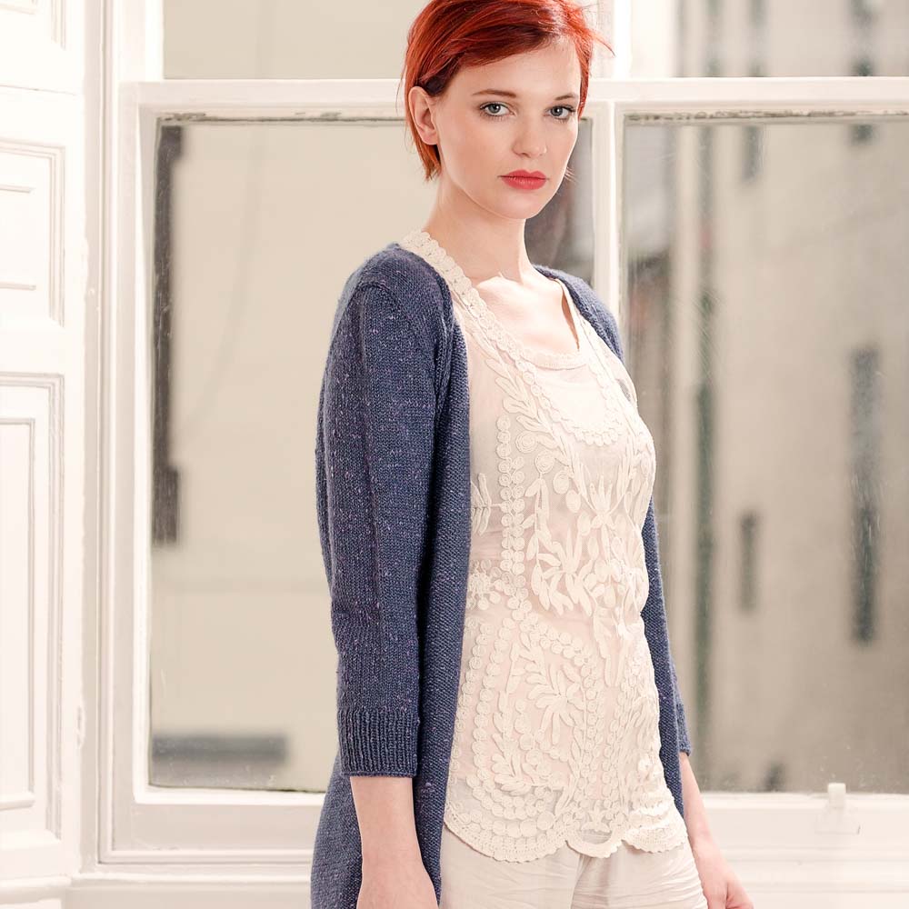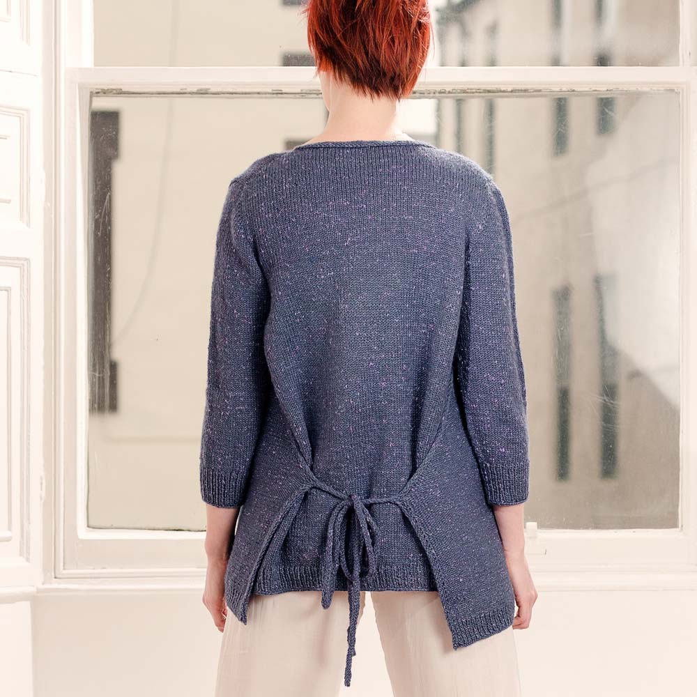 Takumi is the Japanese word for ‘artisan’. The cardigan features a flattering wrap-style, with a longer length, ¾ sleeves, and is finished with i-cord trim.