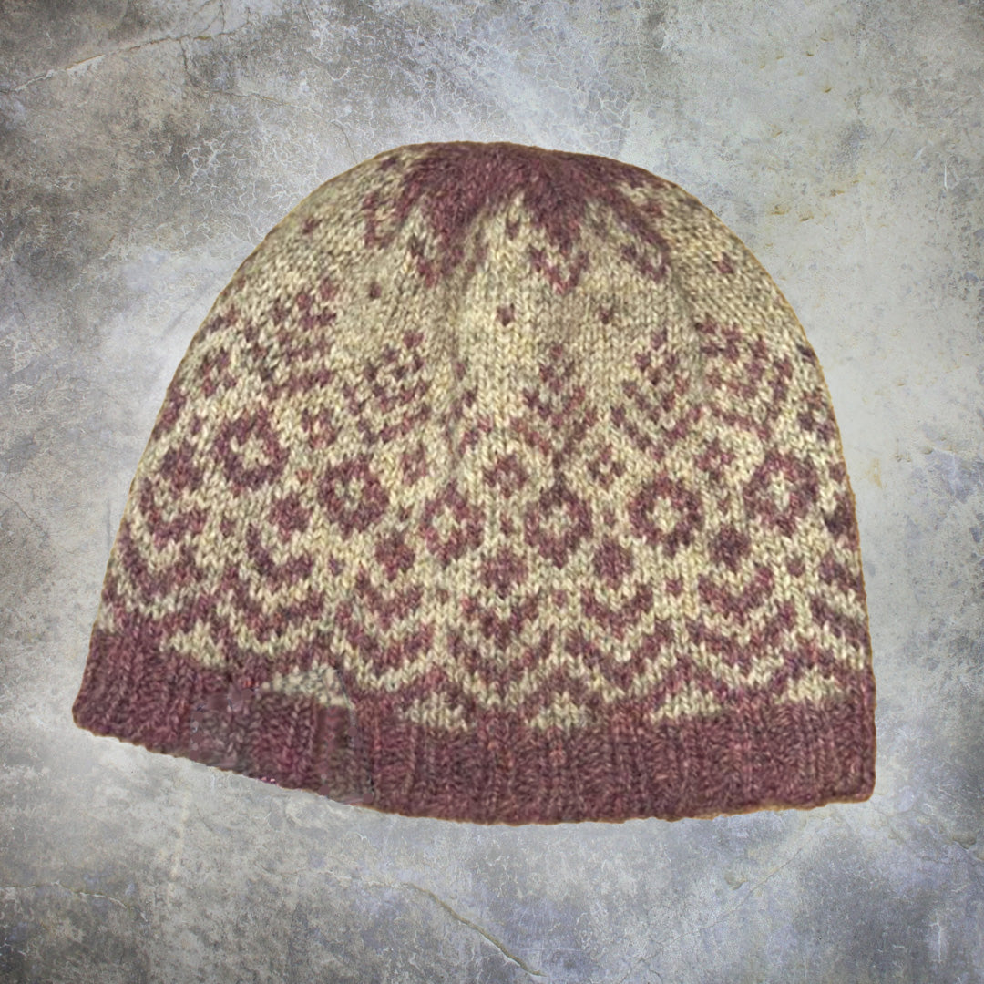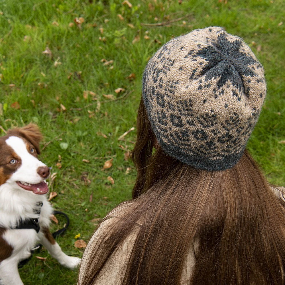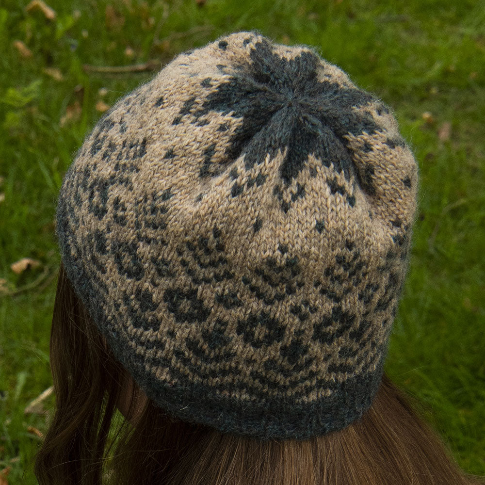 Tenterhill is a modern take on a traditional colorwork hat. It features a graphic two-color pattern that fades into a single color at the crown. Lore is light yet incredibly warm, making this an ideal companion on cold days.