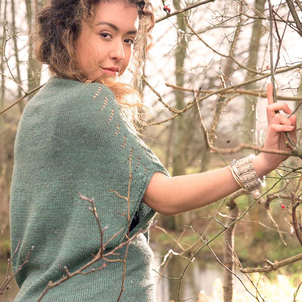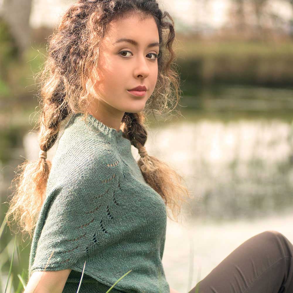 Tsumuzikaze is a Japanese word that means whirlwind, the design inspiration for this lovely pattern with an asymmetrical ‘whirling’ hem. This top has an eyelet pattern on the shoulders and an asymmetrical hem. The design has enough ease at the bust, but it fits nicely around the body with the effect of a whirl.